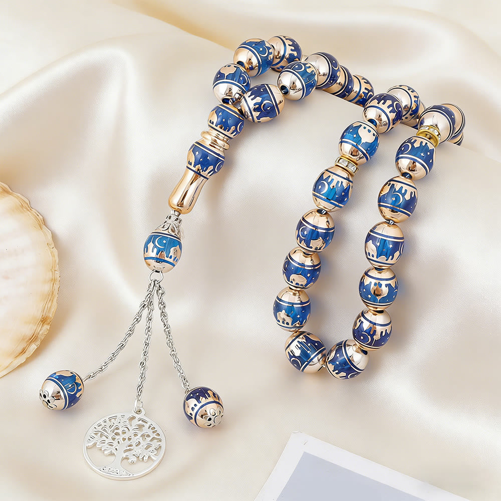 HilalHaven 33 Beads Minimalist Enamel Tasbih——Round Shape Moon Pattern Grounding Tasbih for Daily Mindfulness