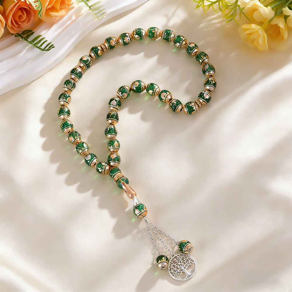 Handcrafted to infuse your daily moments with gentle peace, mindful remembrance, and enduring cultural grace. Each bead is meticulously crafted with premium enamel, featuring a smooth barrel shape and intricate patterns that catch the light with a warm, refined glow—every piece is a unique work of art, a quiet reminder to center yourself, find calm, and stay grounded, even amid life’s busiest days.