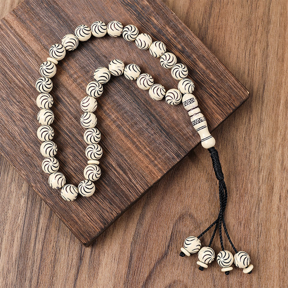 HilalHaven Ethnic Style Wood-Grain Acrylic Tasbih—— 33 Beads Tasbih