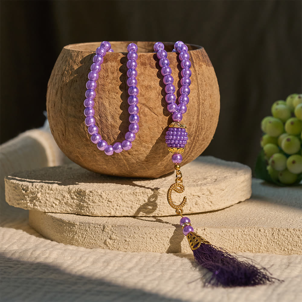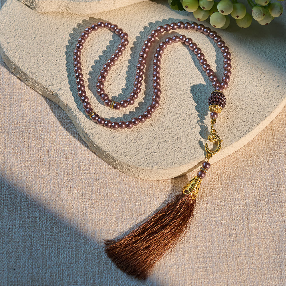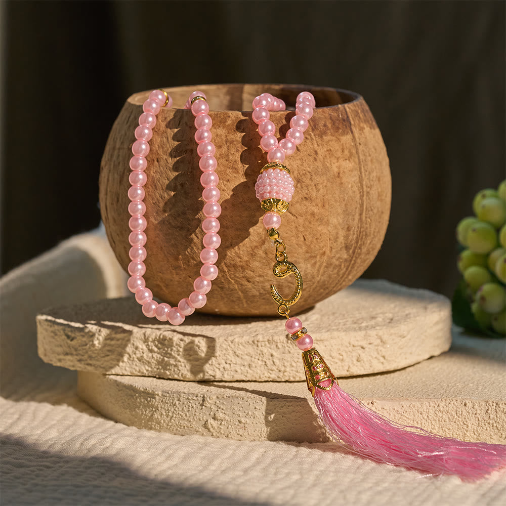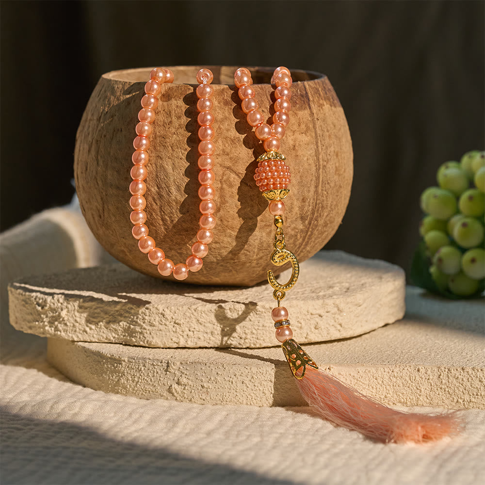HilalHaven 6mm Round Faux Pearl Glass Tasbih with Tassel — Handcrafted Modern Minimalist Islamic Prayer Beads