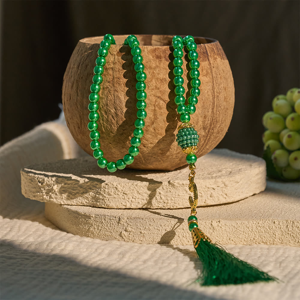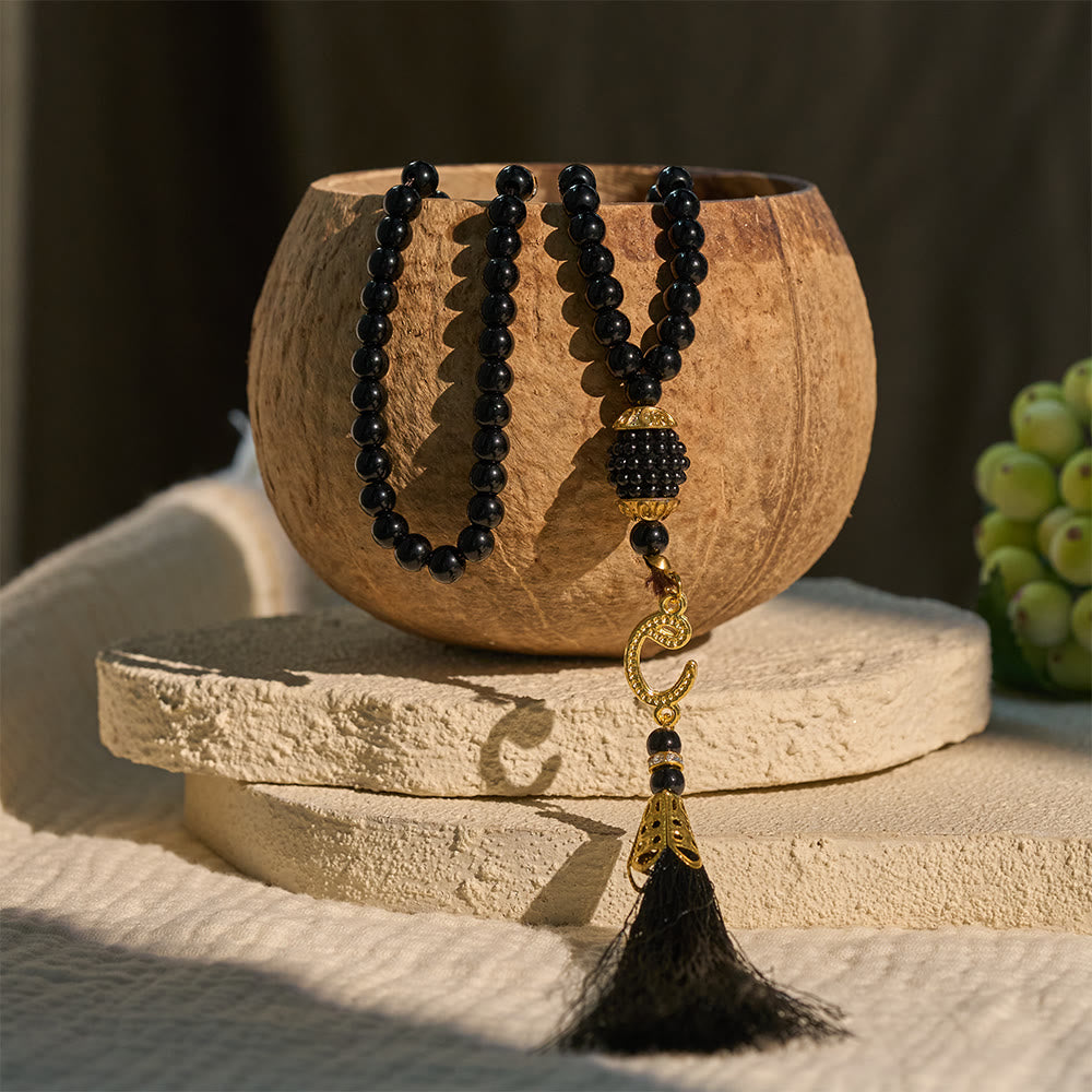 Handcrafted to infuse your daily life with serene mindfulness and spiritual protection, this 99-bead tasbih is a timeless blend of faith and modern simplicity. We selected premium faceted glass beads, whose sharp, luminous cuts catch the light to create a deep, sophisticated glow—each bead is uniquely polished, a quiet reminder of strength and devotion in every moment. Adorned with a polished stainless steel Ayatul Kursi pendant and delicate tassel details, this piece is more than a prayer accessory; it’s a portable sanctuary of Islamic heritage, perfect for daily dhikr,  or as a meaningful keepsake to carry your faith wherever you go.
